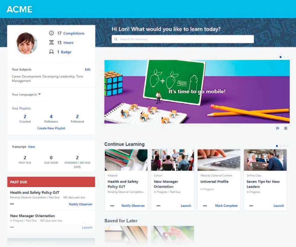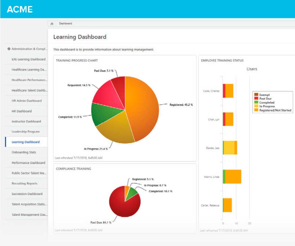 Cornerstone HR provides a cross-functional view of employees that helps managers make better business decisions using real-time data and relevant insights.