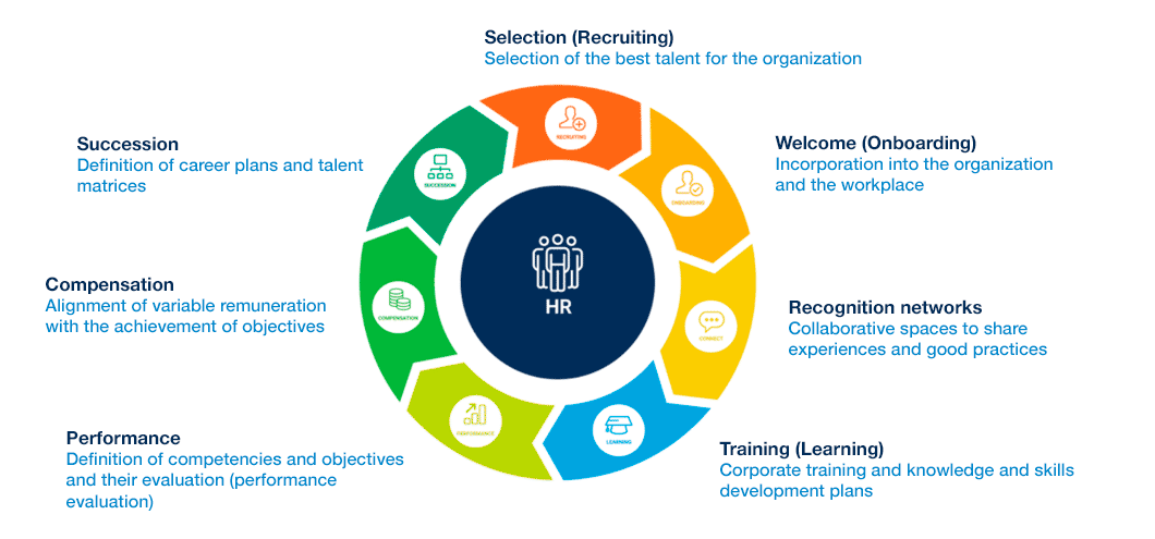 The “Learning” module, a Learning Management System (LMS) solution for formal learning, including training paths, development plans, online and in-person activities, etc.; and the “Connect” module, which promotes informal learning through user communities that share experiences and best practices, creating a knowledge network that enriches the organization.